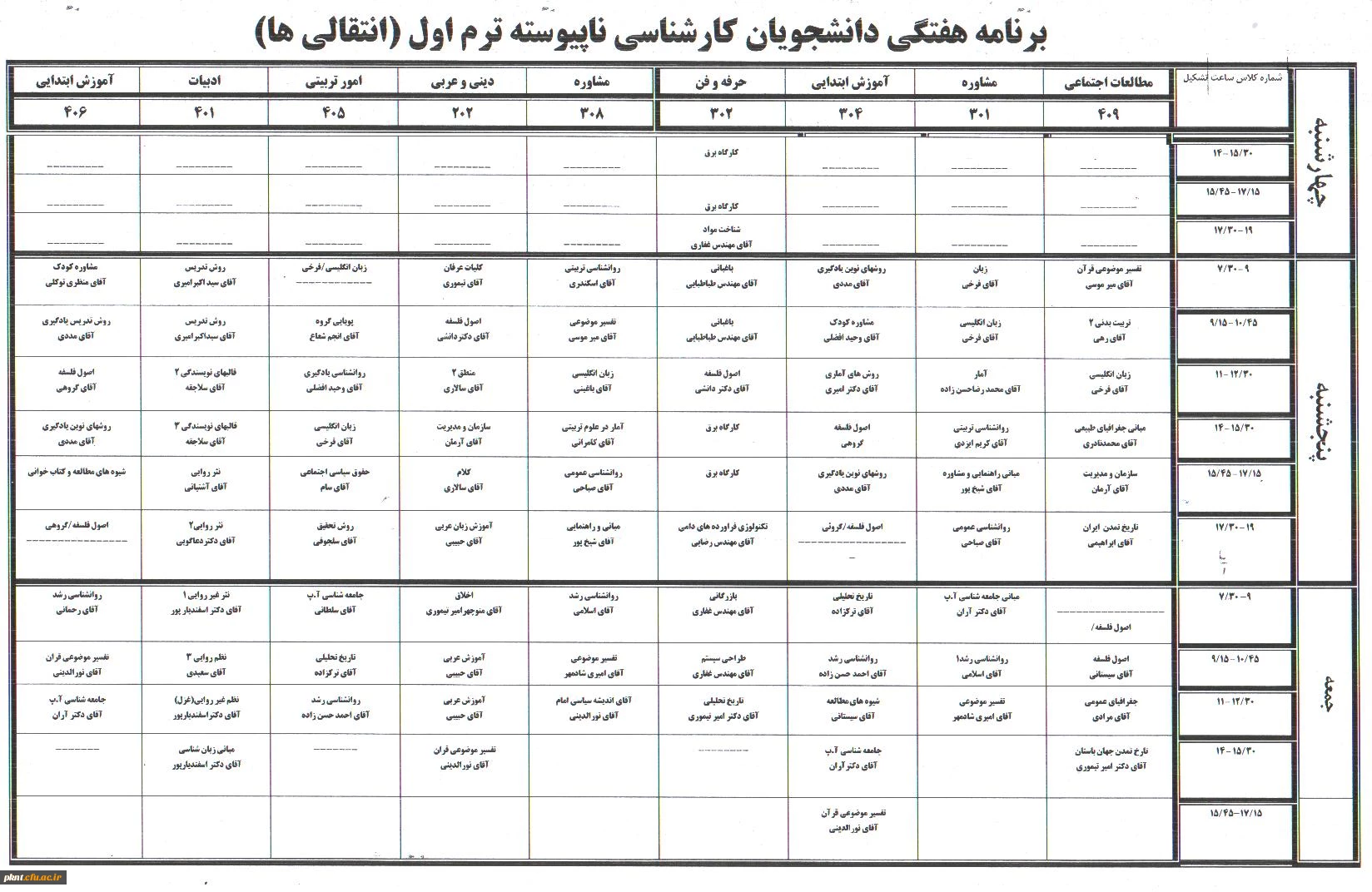 قبل توجه دانشجویان کارشناسی ناپیوسته :برنامه کلاسی جهت رویت ضمیمه میباشد 2