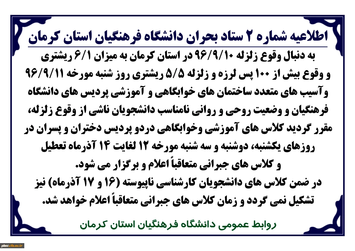 اطلاعیه شماره 2 ستاد بحران دانشگاه