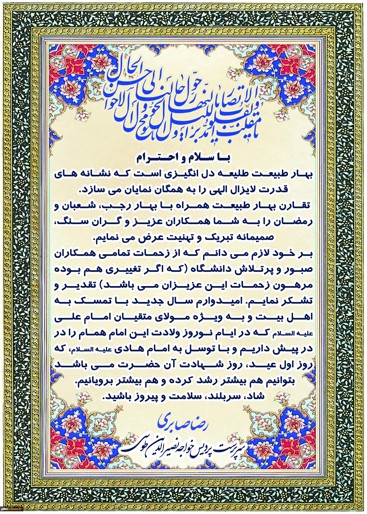 پیام تبریک دکتر صابری به مناسبت آغاز سال جدید