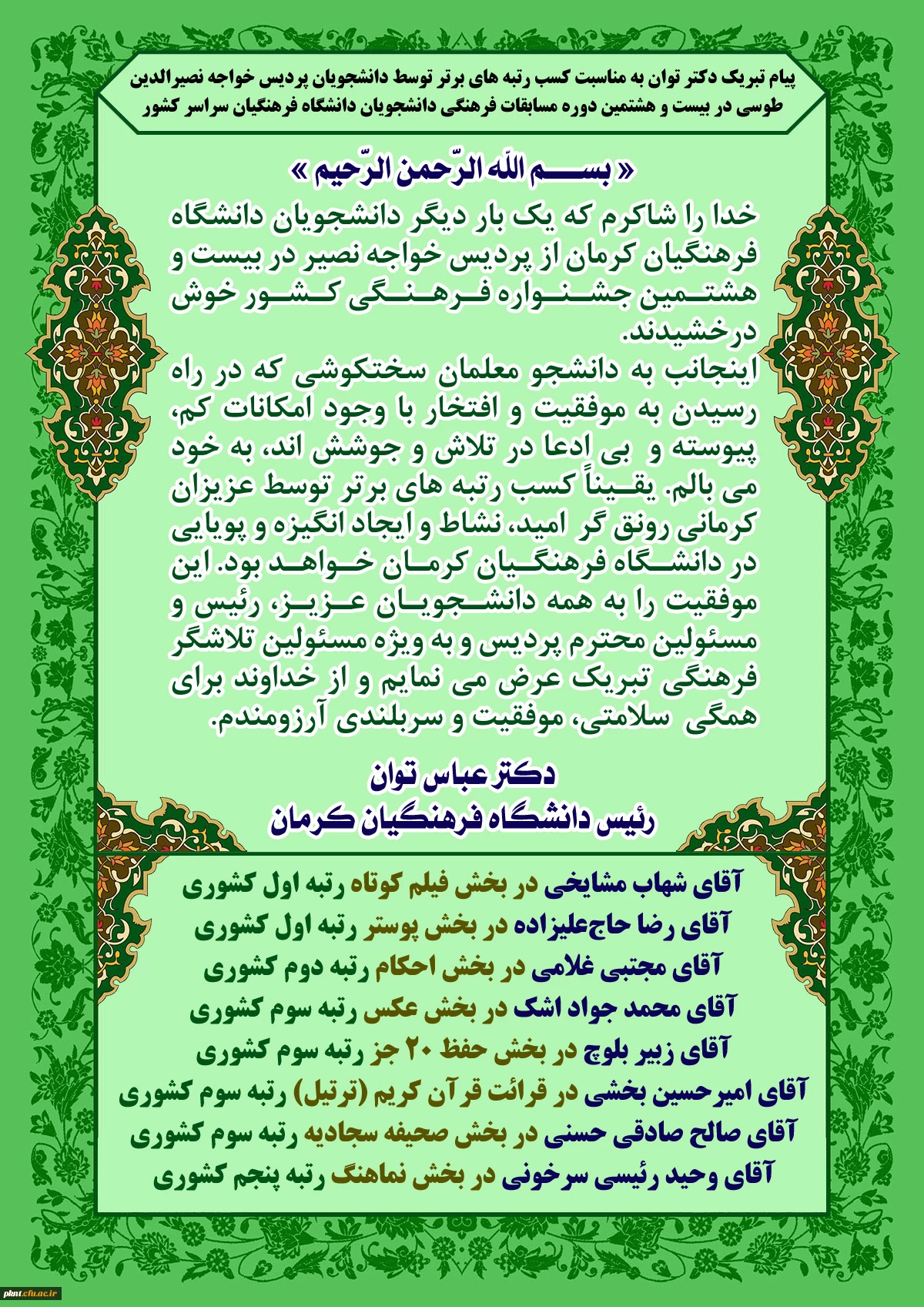 مدیریت امور پردیس های استان کرمان پردیس خواجه نصیر الدین طوسی کرمان