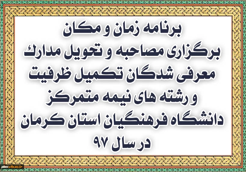 برنامه زمان و مکان برگزاری مصاحبه و تحویل مدارک معرفی شدگان تکمیل ظرفیت و رشته های نیمه متمرکز دانشگاه فرهنگیان استان کرمان در سال 97