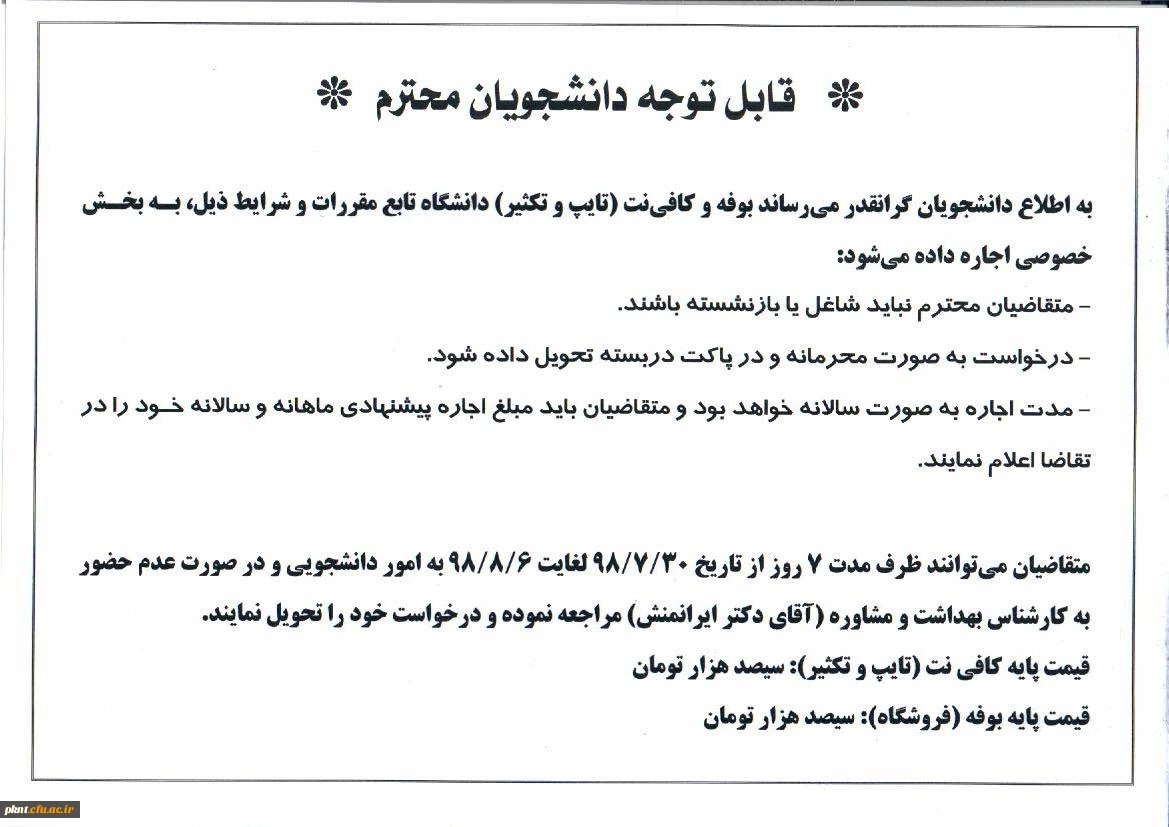 اطلاعیه اجاره بوفه و تایپ و تکثیر پردیس